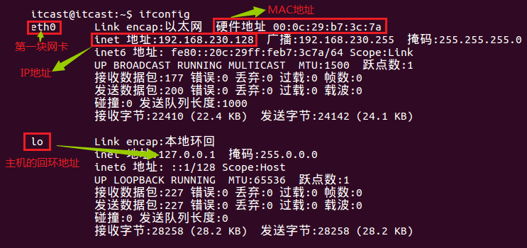 查看ubuntu当前已启用网卡信息,使用ifconfig命令: