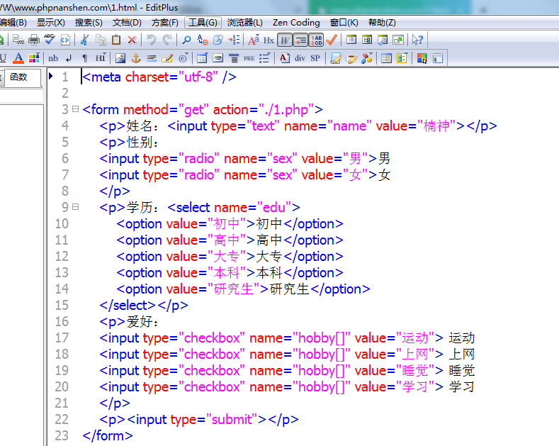 post方式提交的数据用$_POST获取,那get方式提交的数据就用$_GET获取,还是上节的代码,改成get方式提交。